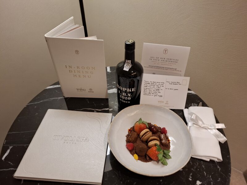Many rooms at Hotel Tivoli Kopke Porto Gaia face the river and offer wide views over Porto, especially from higher floors. Other rooms look onto the gardens or inner areas of the property. Rooms are comfortable and practical, with good beds, modern bathrooms, and enough space to relax after a day of walking around the city. Some rooms have balconies or terraces, which are especially nice in warmer months. I was impressed with our room, which included a comfortable bed and a rain shower in the bathroom. All with an attractive design. The views of Porto from the balcony were another impressive highlight, and so were the welcome amenities in the room upon arrival. It is nice to see when a hotel puts effort into attention to detail.