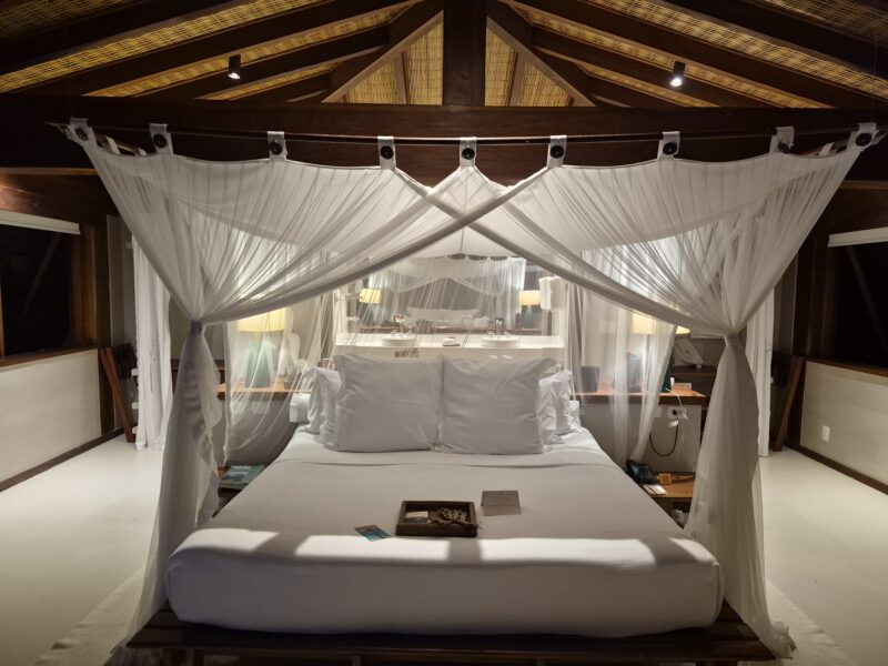 The property is large, but the number of rooms is limited, so it never feels crowded. Accommodations are spread out across the land, with some units closer to the beach and others higher up, offering views of the ocean or the forest. I stayed in a lovely hilltop bungalow built with an attractive design, a soft bed, and an outdoor rain shower as a highlight. The only downside was that the bed linen, pillow case, duvet and towels were not washed in a fragrance-free product, but this is unfortunately not the standard in Brazil. The sea view from the balcony area was fantastic, and the air quality was great. The internet was free of charge and had a good speed considering the remote location of the resort.