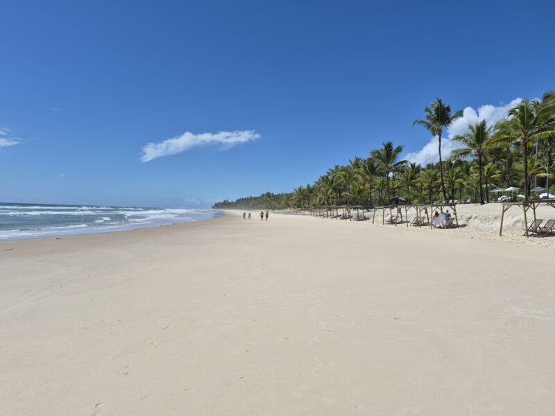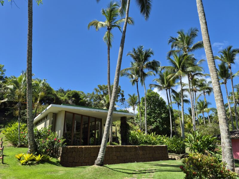 The resort also has a spa located on a hill overlooking the property. Treatments include massages and body therapies, and there are also yoga sessions offered from time to time. The spa is simple, designed mainly for rest. Txai offers several activities. These include walking trails through the surrounding forest, surfing lessons, kayaking, and horseback riding along the beach. The nearby town of Itacaré is known for surfing and has a relaxed, small-town feel, with local restaurants and shops. I visited Itacaré during my stay, and while I can recommend it, enjoying the beach at Txai, drinking coconut is much, much better than at a crowded public beach.