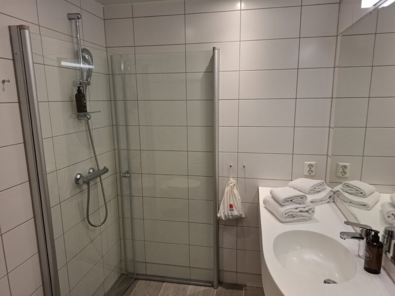 I arrived at the hotel, where I met friendly staff and liked the room I was given. The hotel offers a range of room types, including standard rooms, family rooms, and rooms with fjord or river views. Room sizes and layouts vary, but all rooms are equipped with private bathrooms, beds suitable for both short and longer stays, desks or seating areas, storage, and wireless internet access. The interior design is functional and modest, focusing on comfort and usability rather than decorative elements. Some rooms include balconies or larger windows that provide views of the surrounding landscape.